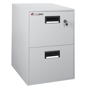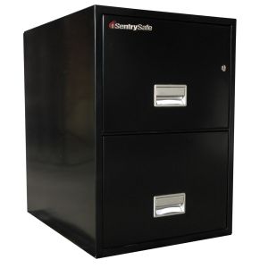 The Sentry 2G2500 fire rated file cabinet is a two drawer vertical file. The fire protection comes certified by UL, Underwriters laboratory which tested this model at 1700F. After one hour the interior remained at or below a temperature of 350F. Because this is a shorter but strong file, you can use the top for other office equipment such as a fax.