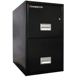 The Sentry 2T2500 two drawer file cabinet is a vertical file with 1 hour fire protection. This file cabinet has a 1 hour fire protection label from UL, Underwriters Laboratory, and independent testing facility. This is a ruggedly built file cabinet with rugged suspension for drawers making them easy to access.
