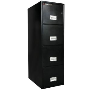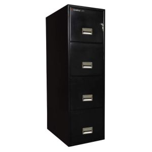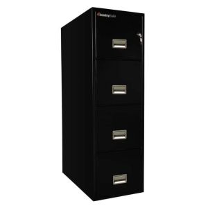 The Sentry 4T2510 is a sturdy four drawer file cabinet. . Each drawer has a rugged suspension system to make opening and closing drawers easy. It has UL 1 hour fire protection and impact resistance in case a floor burns out from under it. It comes with a plunger key lock and also the lock/unlock system which allows you to keep one drawer open and the others locked.