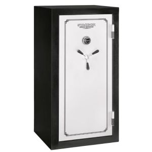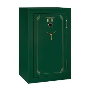 This electronic gun safe from Stack-On has high security features such as a reinforced door, 5 live locking bolts and 3 dead bolts. An ETL waterproof and ETL fire rating are attached to this electronic gun safe. The interior is fully carpeted; has adjustable shlves and has gun barrel rests and stand offs for scoped guns. You can store up to 28 long guns in this Stack-On model. The electronic gun safe features a battery operated key pad that offers quick access. It is pre-drilled for bolt down to the floor.