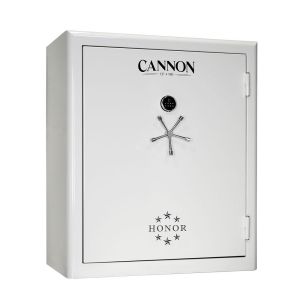 Learn MoreThis long guns safe from Cannon features a full partition system, composed of 2 partition sections, 6 sides shelves and a door organizer (PDO) kit, allowing it to store up to 90 firearms in total. The door opens with a spoke handle. The safe also has a rounded edge design, fire and water resistance and It also was approved as secure firearm storage by the California Department of Justice. $3,762.63 - Cannon HR5950-G21FBC-22 Honor 80+10, 90 min Fire, 7 Day Water, Blue