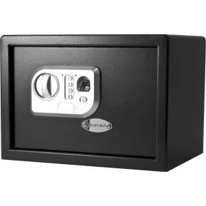 - Barska AX11646 Standard Biometric Pistol and Security SafeThe Barska AX11646 Standard Midsize Biometric Pistol and Security Safe has a solid body and a floor mat that help protect your valuables and firearms. This security is complemented by its biometric fingerprint scanning system, which in addition to reinforcing security allows quick access to whoever has authorized access. This safe has a removable storage shelf, works with AA batteries (which are included) and also has backup keys so you can open it in emergencies. Learn More$239.94